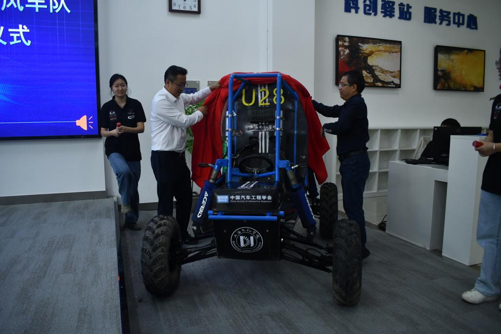 仪式上,副校长王宏志对学院巴哈车队师生的辛勤付出、不懈努力及奉献精神给予了充分的肯定。王副校长深情寄语车队,对未来充满了无限的期望与憧憬。他强调,学校将一如既往地作为巴哈赛车队最坚实的后盾,全力支持车队的建设与发展。他表示,期待车队在接下来的比赛中,能够继续发扬拼搏精神,再创佳绩,用实际行动为学校增添光彩,书写更加辉煌的篇章。
