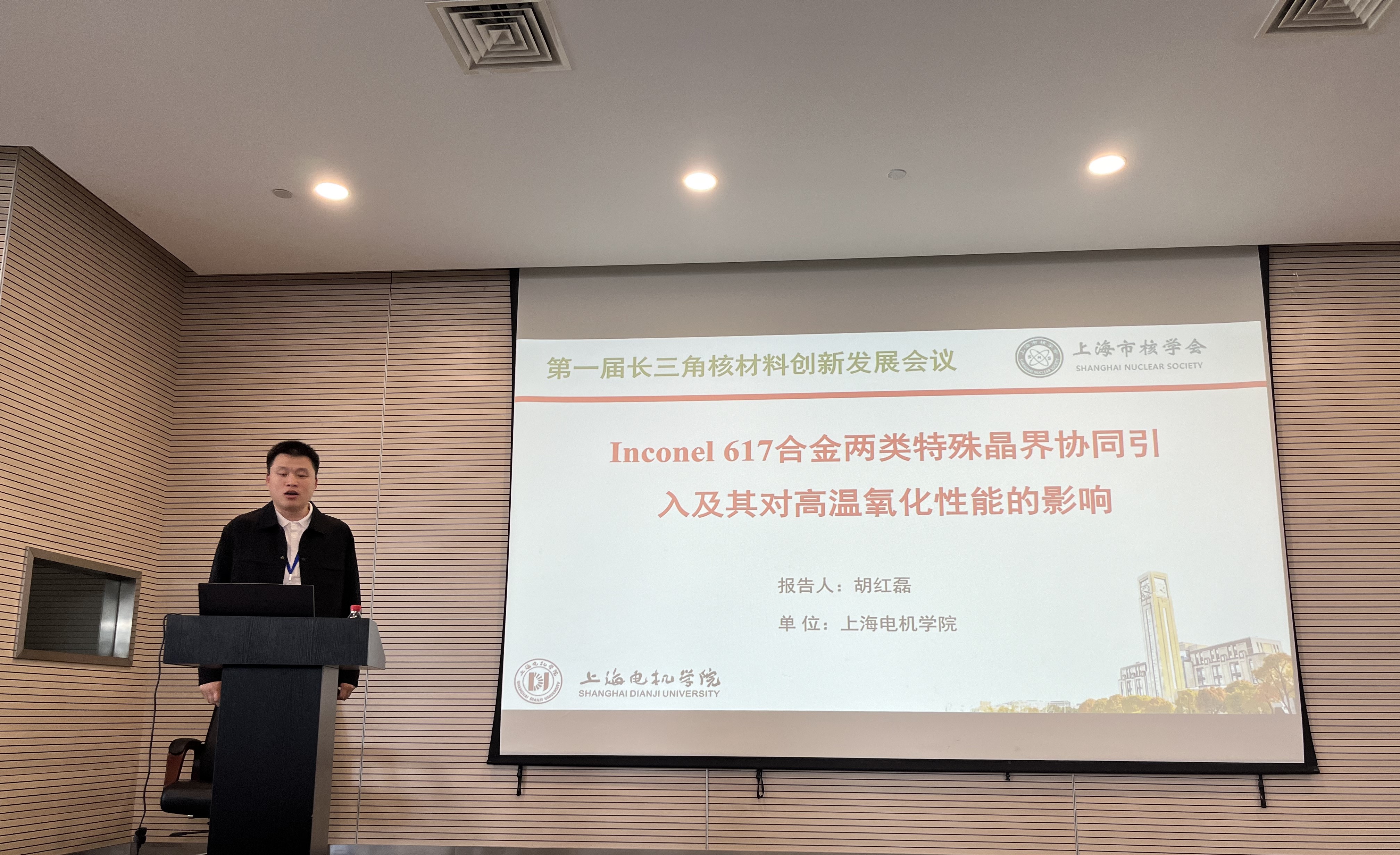 来自香港科技大学、上海交通大学、牛津大学、中国科学院上海应用物理研究所、中国科学院上海硅酸盐研究所宝和武特种冶金有限公司等国内外知名高校、研究所和企业的200余名代表参与了本次会议。会议邀请了香港科技大学/上海大学张统一院士,上海应用物理所原所长徐洪杰教授等专家进行了特邀报告。上海市核学会核材料专委会委员,44118太阳成城集团副教授胡红磊受邀进行了“Inconel 617合金两类特殊晶界协同引入及其对高温氧化性能的影响”主会场报告。通过参加本次会议,我校师生了解了国内外核材料研发、核电技术应用等方面的发展现状,增进了我校与长三角地区以及全国核材料科学与技术的交流。